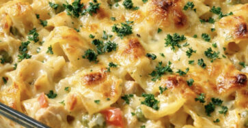 Oven-Baked 4-Ingredient Amish Chicken à la King Noodles: The Easiest Creamy Casserole You’ll Ever Make