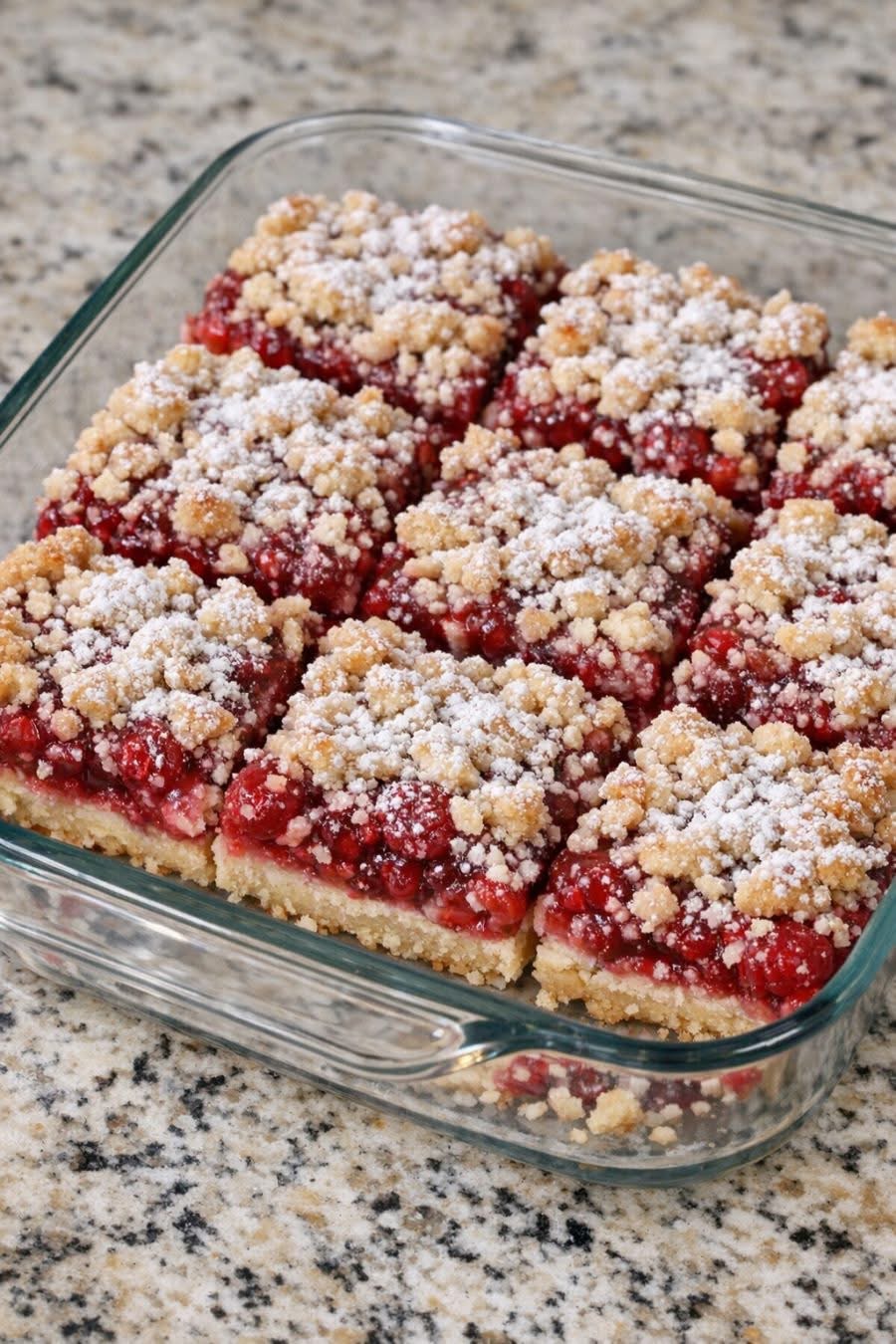 Serve raspberry cream cheese bars chilled or at room temperature. They’re delicious on their own or lightly dusted with powdered sugar for a simple finishing touch.