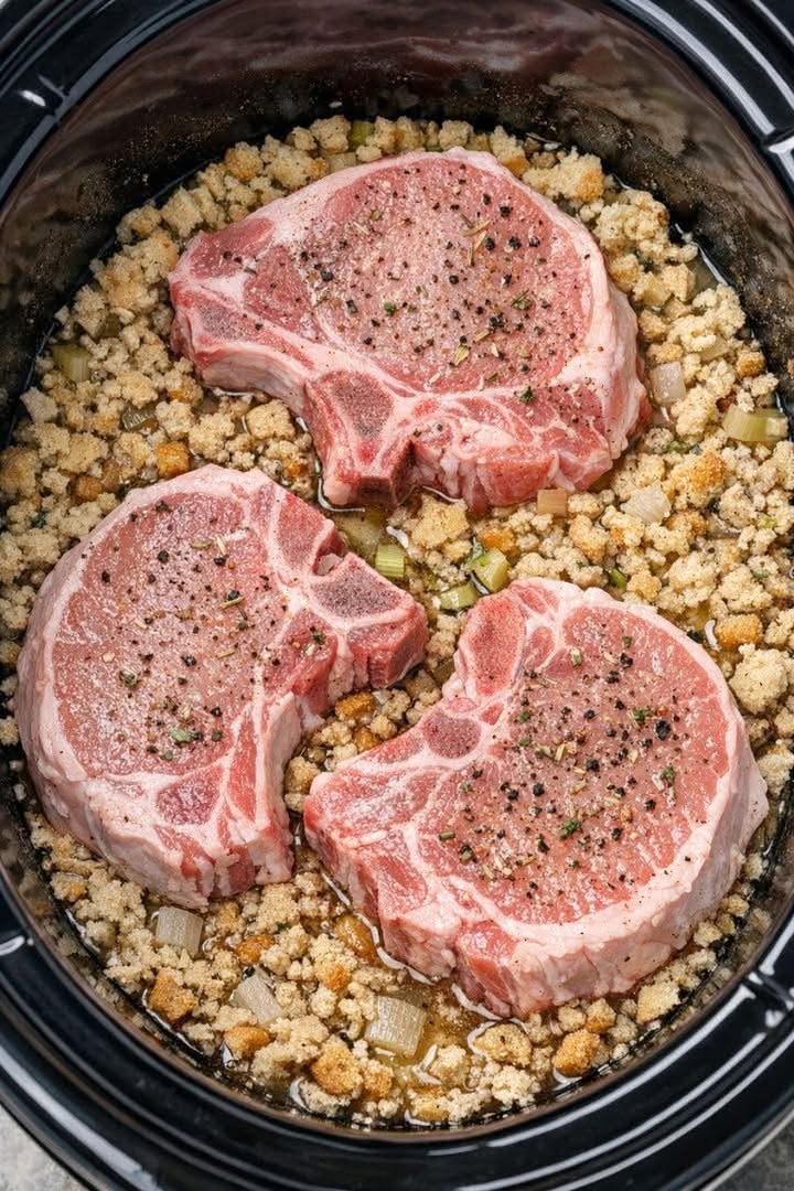 This recipe is a classic for a reason. It uses simple pantry staples: pork chops, stuffing mix, cream of mushroom soup, and chicken broth. The slow cooker does all the work, transforming these humble ingredients into a comforting, satisfying dinner that tastes like a warm hug.