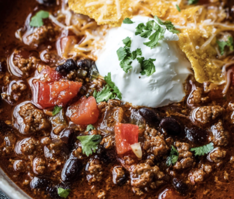 Ground beef provides hearty, savory depth. Taco seasoning brings all the familiar, craveable flavors of taco night. Diced tomatoes add acidity and brightness. Black beans add protein, fiber, and a creamy texture. Corn adds sweetness and pop of color. Beef brothties everything together into a rich, savory base.