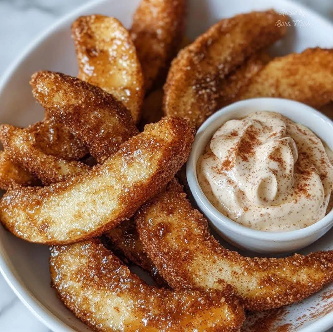6. Once the apple wedges are finished, remove them from the air fryer and quickly toss them in the cinnamon-sugar mixture until they are well covered.