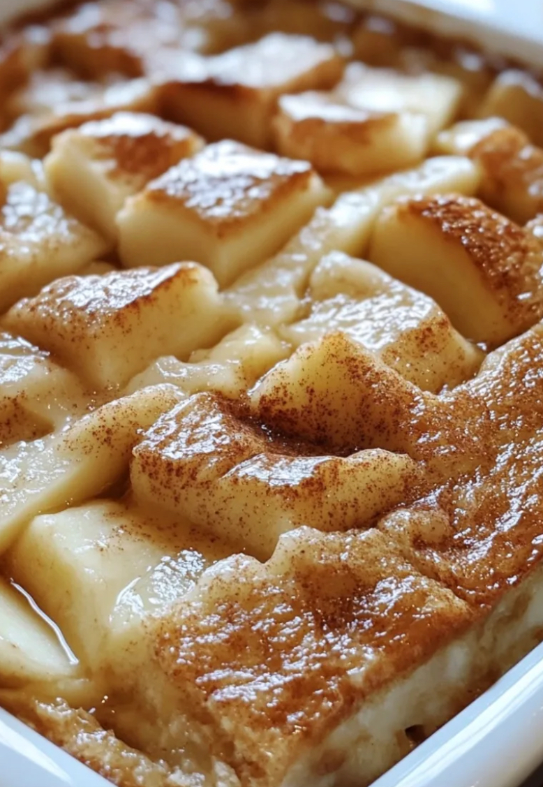This dessert takes everything you love about apple pie—sweet apples, cinnamon, nutmeg, and a touch of caramel—and bakes it into a creamy bread pudding. The custard-soaked bread turns golden and crispy on top while staying soft and rich inside. It’s simple enough for a weeknight dessert but special enough for Thanksgiving or Christmas gatherings. Serve it warm with vanilla ice cream or a drizzle of caramel sauce, and watch it disappear fast!