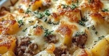 Ingredients: 1 lb ground beef 4-5 medium potatoes, thinly sliced 1 small onion, chopped 2 cups shredded cheddar cheese 1…