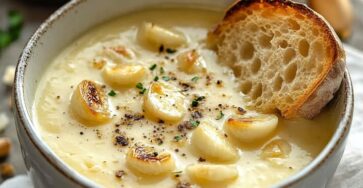 Ingredients: 2 whole heads of garlic, peeled 1 tablespoon olive oil 1 onion, chopped 2 tablespoons butter 6 cups chicken…