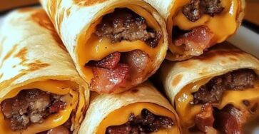 Ingredients: 4 large flour tortillas 8 oz cream cheese, softened 1 cup shredded cheddar cheese 1 cup cooked ground beef,…