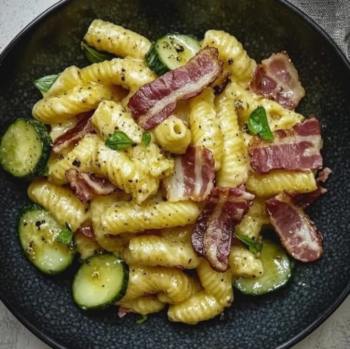 400 grams of chassis fuse 4 fresh courgettes 300g of bacon (one tranche is mineux) 250 g of crémeux navet ine Extra virgin olive oil (to taste) Twenty (to taste) Basil frais ou menthe