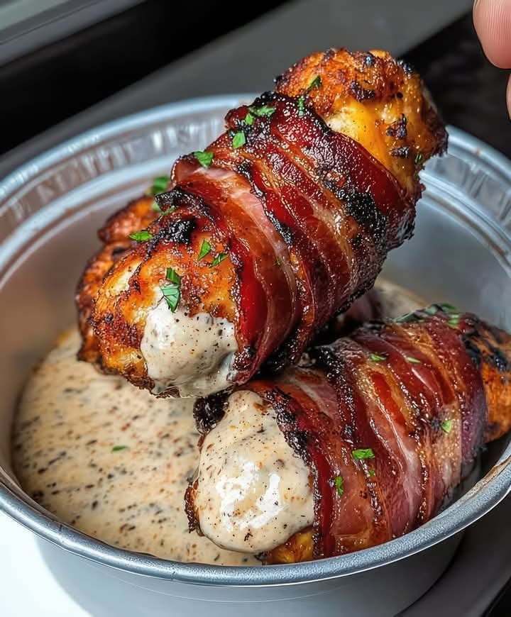 Cook the Chicken: Heat the olive oil in a large skillet over medium-high heat. Add the bacon-wrapped chicken and cook for 5-7 minutes per side, or until the chicken is cooked through and the bacon is crispy.