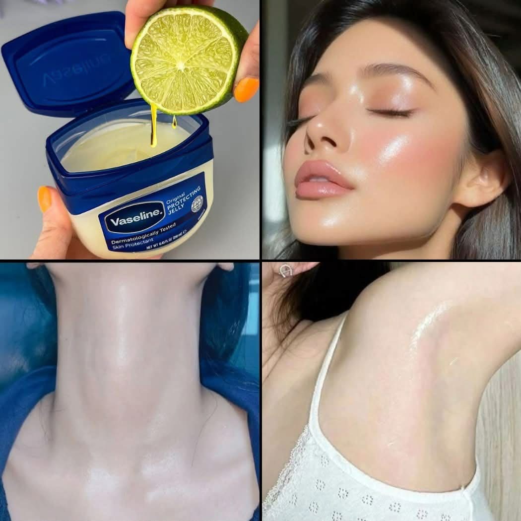The combination of Vaseline (petroleum jelly) and fresh lemon juice creates a powerful natural treatment. Vaseline locks in moisture, protecting the skin barrier and preventing dryness. Lemon, rich in vitamin C and citric acid, naturally lightens dark spots and gently exfoliates dead skin cells. Together, they provide both hydration and brightening, making them perfect for sensitive areas such as underarms, face, and neck.