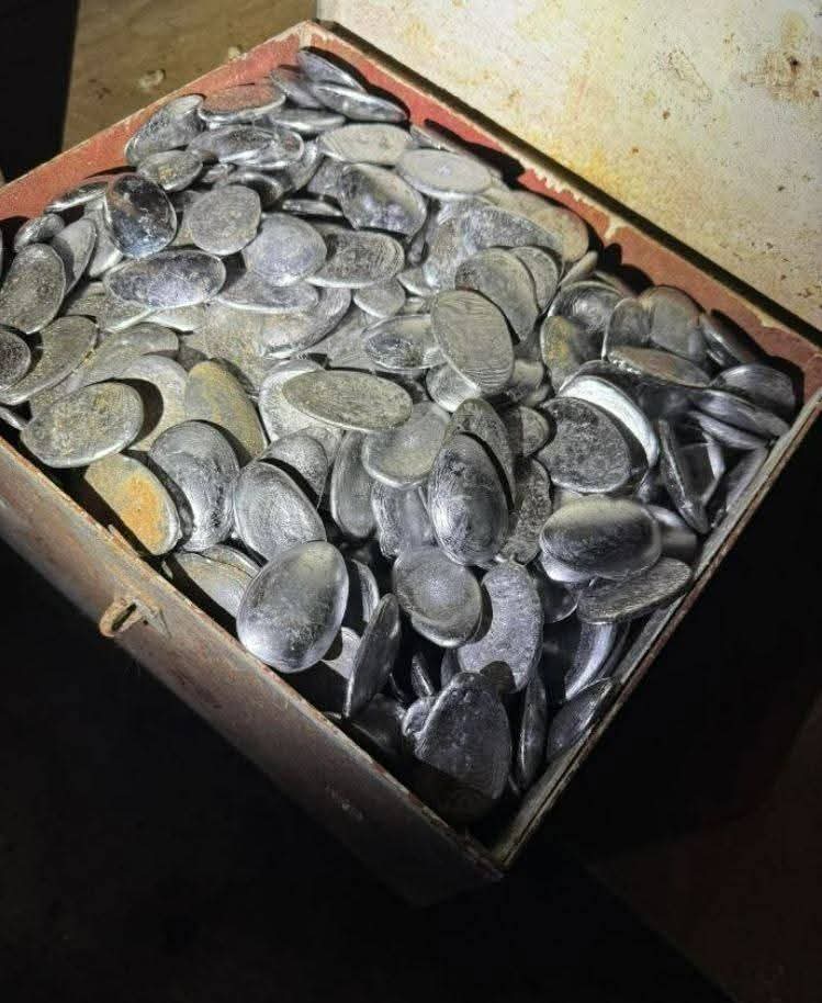 They melted lead in cast-iron  spoons. They poured the molten metal into molds for bullets or fishing sinkers. A household might have a cast iron spoon bullet mold. This was not in a factory — this was at home.