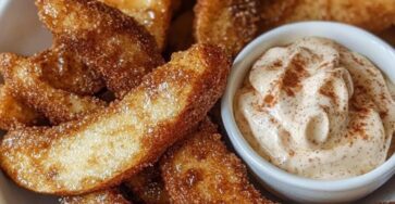 Air Fried Apple Wedges with Caramel Whipped Cream Dipping Sauce