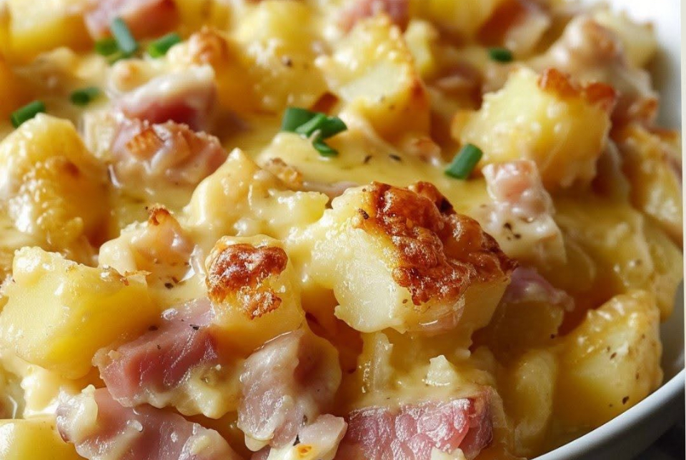 Cheesy Ham and Potato Casserole Creamy, comforting, and packed with tender potatoes, savory ham, and melted cheese, this cheesy ham and potato casserole is a perfect family-friendly meal or holiday side dish. Ingredients 3 cups cooked ham, diced 4 cups potatoes, peeled and thinly sliced (or frozen hash browns) 1 small onion, finely chopped 2 cups shredded cheddar cheese 1 can (10.5 oz) cream of chicken soup ½ cup sour cream ½ cup milk 2 tablespoons butter, melted ½ teaspoon garlic powder ½ teaspoon onion powder Salt and black pepper, to taste Optional Topping ½ cup crushed buttery crackers or cornflakes 2 tablespoons melted butter Instructions Preheat oven to 375°F (190°C). Grease a 9×13-inch baking dish. In a large bowl, combine cream of chicken soup, sour cream, milk, melted butter, garlic powder, onion powder, salt, and pepper. Stir in potatoes, diced ham, onion, and 1½ cups of the shredded cheese. Spread mixture evenly into the prepared baking dish. Sprinkle remaining cheese on top. If using a topping, mix crushed crackers or cornflakes with melted butter and sprinkle over casserole. Cover with foil and bake for 45 minutes. Remove foil and bake an additional 15–20 minutes, until bubbly and lightly golden. Let rest for 10 minutes before serving.