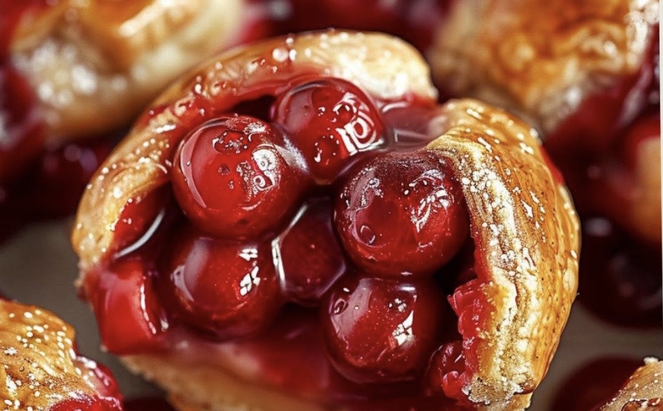 Spoon about 1 tablespoon of cherry pie filling into the center of each dough circle.