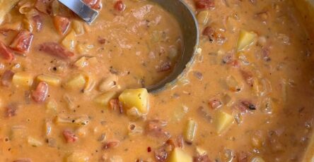 Stir in the brown sugar, corn syrup, and sweetened condensed milk. Cook and stir continuously until it reaches 235-240F on a candy thermometer.