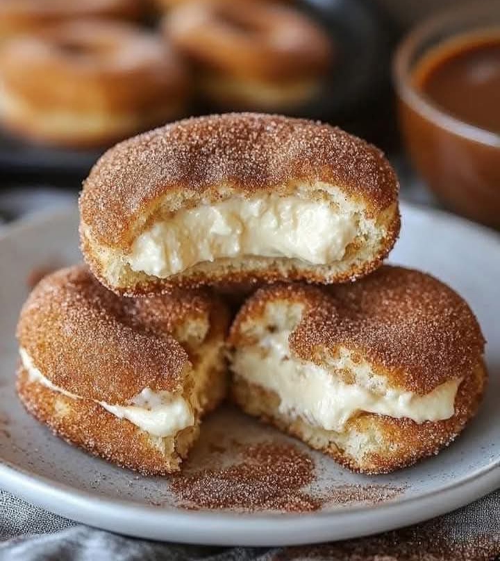 Prepare the Cheesecake Filling: Beat cream cheese, sugar, and vanilla, then pipe the mixture into dough.