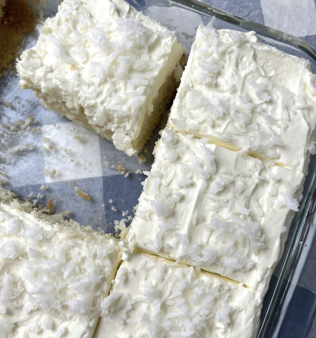 It’s tender, airy, and bursting with coconut goodness—just the right balance of creamy, fluffy, and refreshing. Imagine a delicate white cake soaked in velvety coconut milk, topped with a cloud-like whipped cream frosting and a flurry of shredded coconut. It’s pure bliss in every bite—and the best part? You don’t need any fancy ingredients or a pastry degree to pull it off.