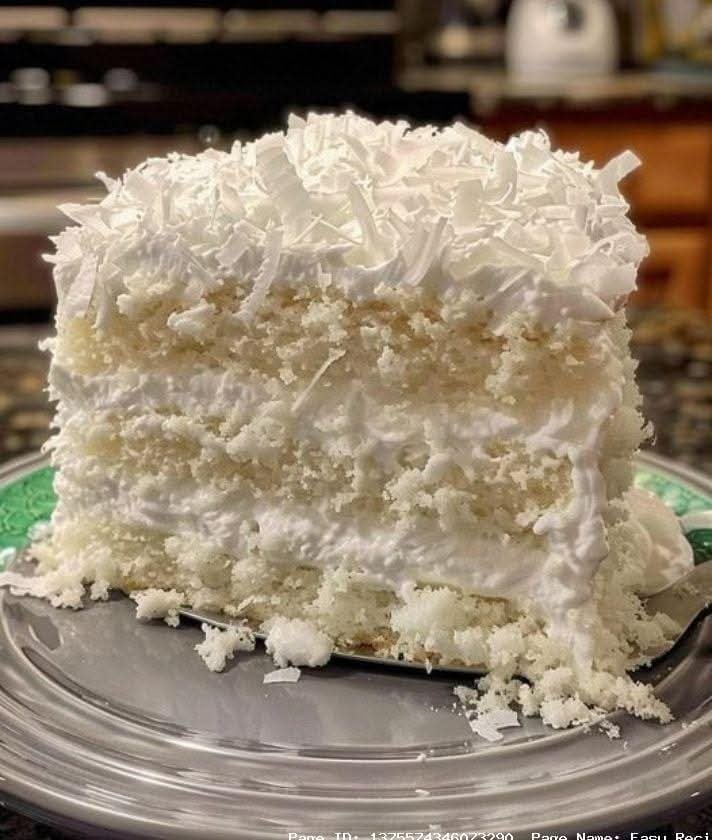4 ๏ธโฃ Let the cake cool, then frost with Cool Whip and sprinkle with grated coconut.