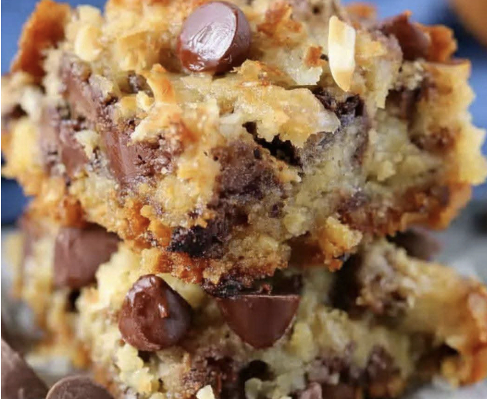 Imagine the cozy comfort of your favorite chocolate chip cookie, now infused with tropical coconut and crunchy caramelized toffee. That’s exactly what you’ll find in every bite of these indulgent bars — rich, chewy, golden perfection.