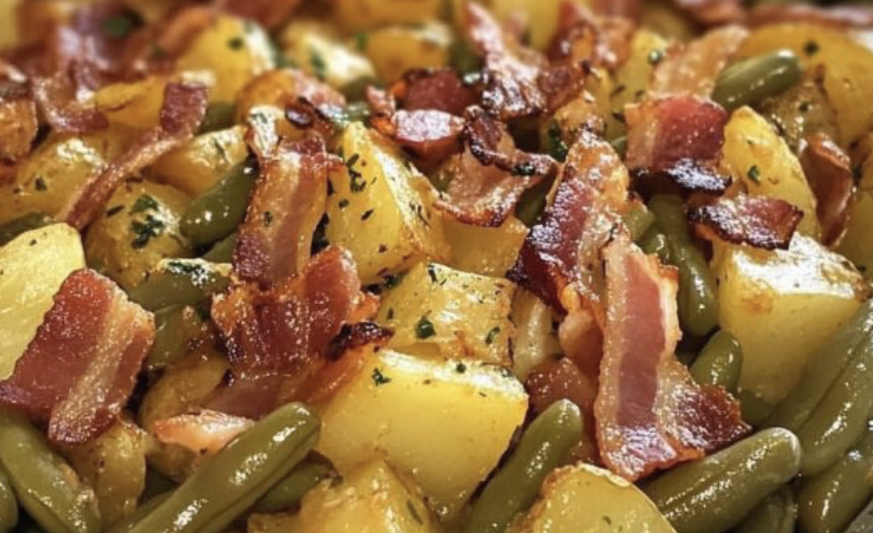This hearty, flavor-packed dish brings together tender potatoes, crisp green beans, and smoky bacon—all tossed in a buttery ranch-garlic sauce. It’s the perfect comfort side dish that pairs beautifully with roasted meats or can stand alone as a satisfying meal.