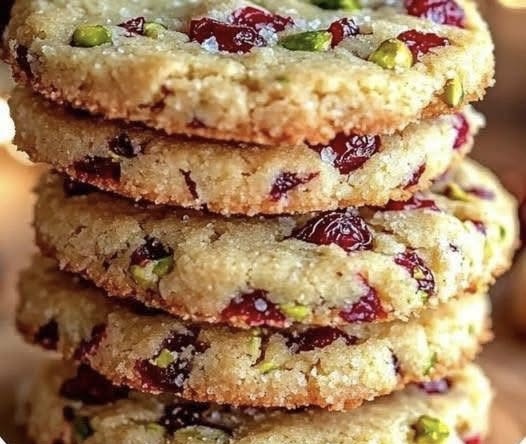 These cookies are loved for their tender, crumbly texture and perfectly balanced flavor. The buttery shortbread base pairs beautifully with the tartness of cranberries and the nutty crunch of pistachios.