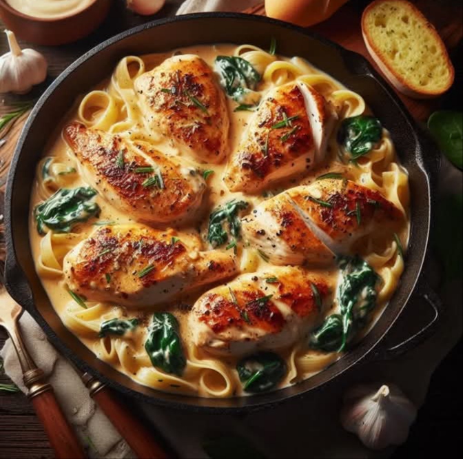 6. Stir in spinach until wilted, then return the chicken to the pan.