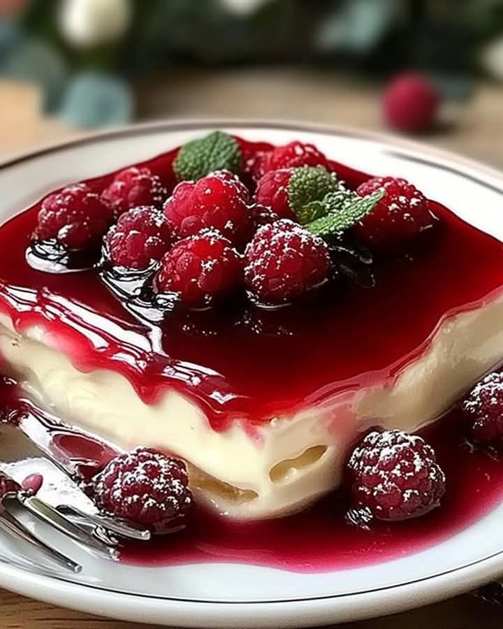 9. Enfin, il est temps de procéder au montage. Versez le pudding refroidi dans d’élégants bols à dessert et recouvrez généreusement de sauce sucrée aux framboises.