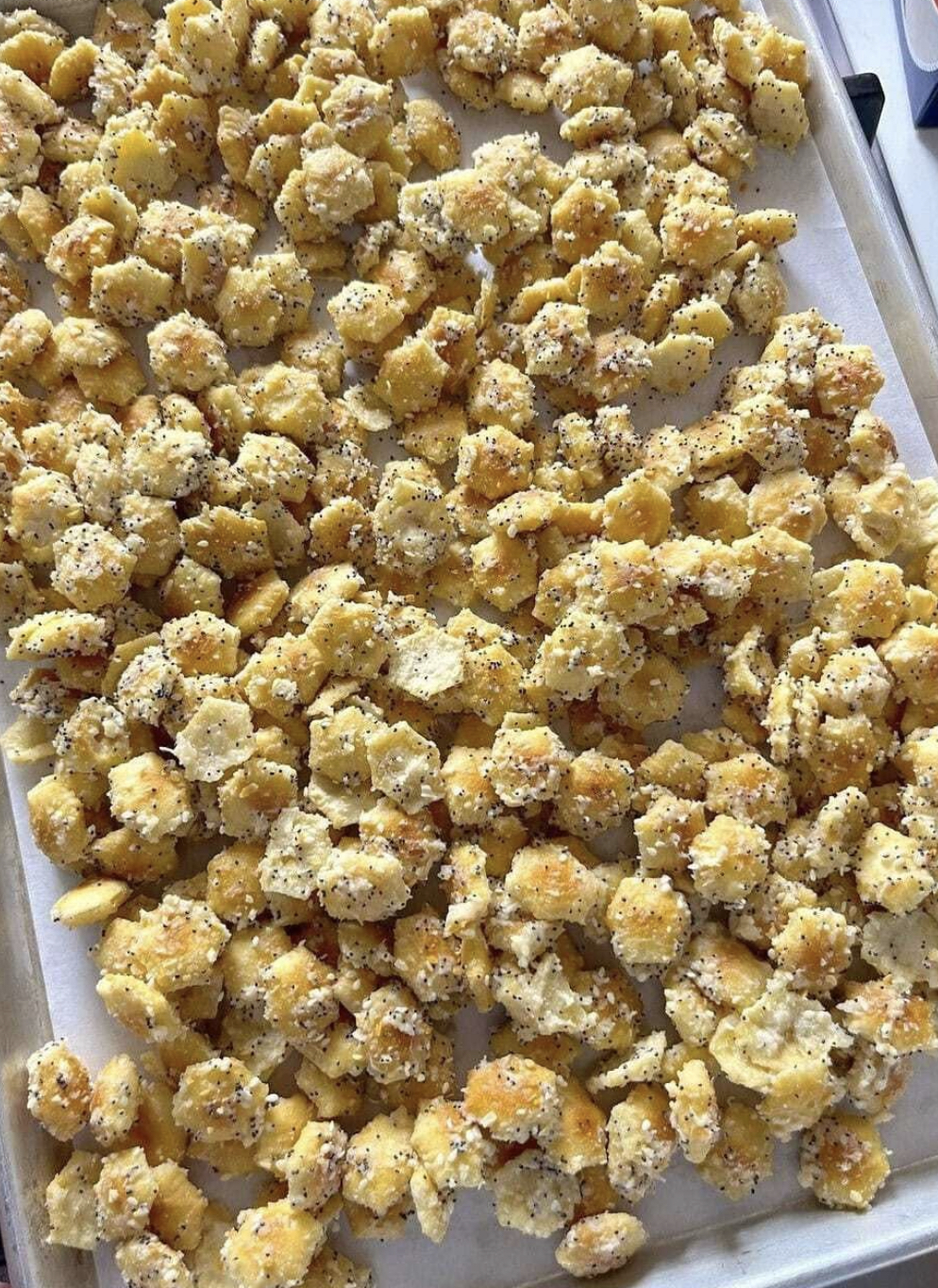 A quick and addictive snack that’s salty, savory, and perfectly crunchy. These Everything Bagel Bits are made with oyster crackers tossed in butter, Parmesan, and everything bagel seasoning—baked until golden and irresistible.