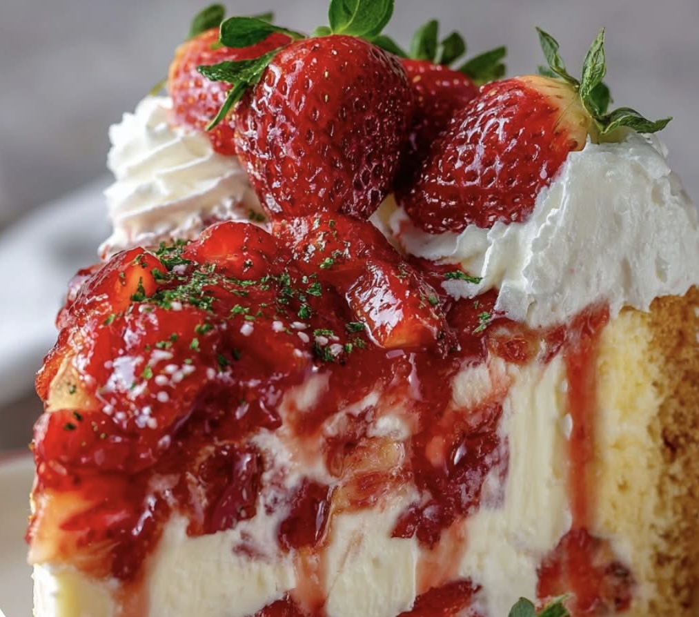 This cheesecake combines the nostalgic flavors of traditional strawberry shortcake with the rich, indulgent texture of classic cheesecake. The contrast of creamy filling, sweet strawberries, and soft, crumbly cake layers creates a dessert that’s balanced, refreshing, and incredibly satisfying.