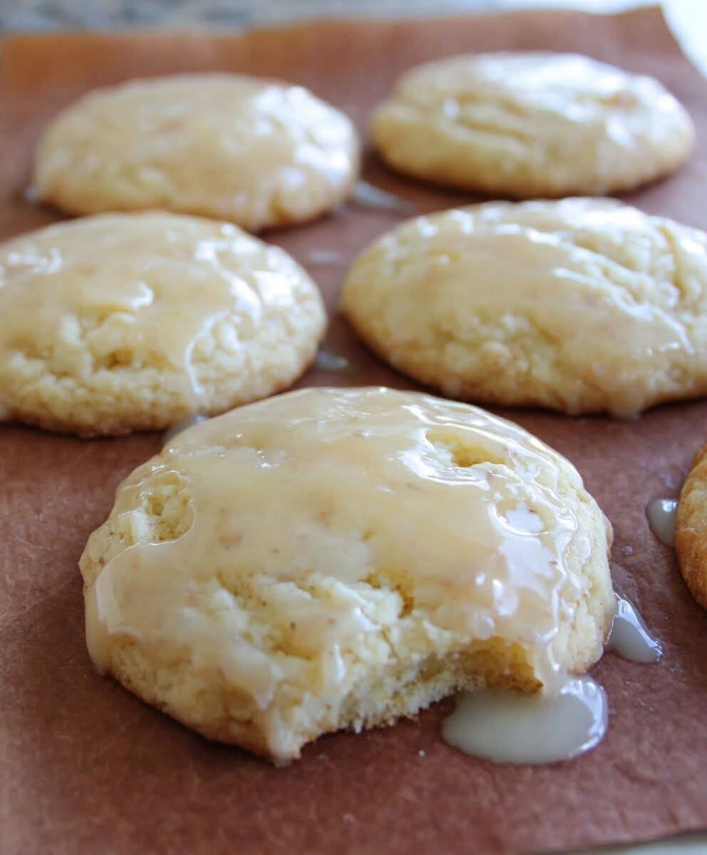 While the cookies are baking, prepare the butter glaze by whisking together the melted butter, confectioners’ sugar, vanilla, and water until smooth.