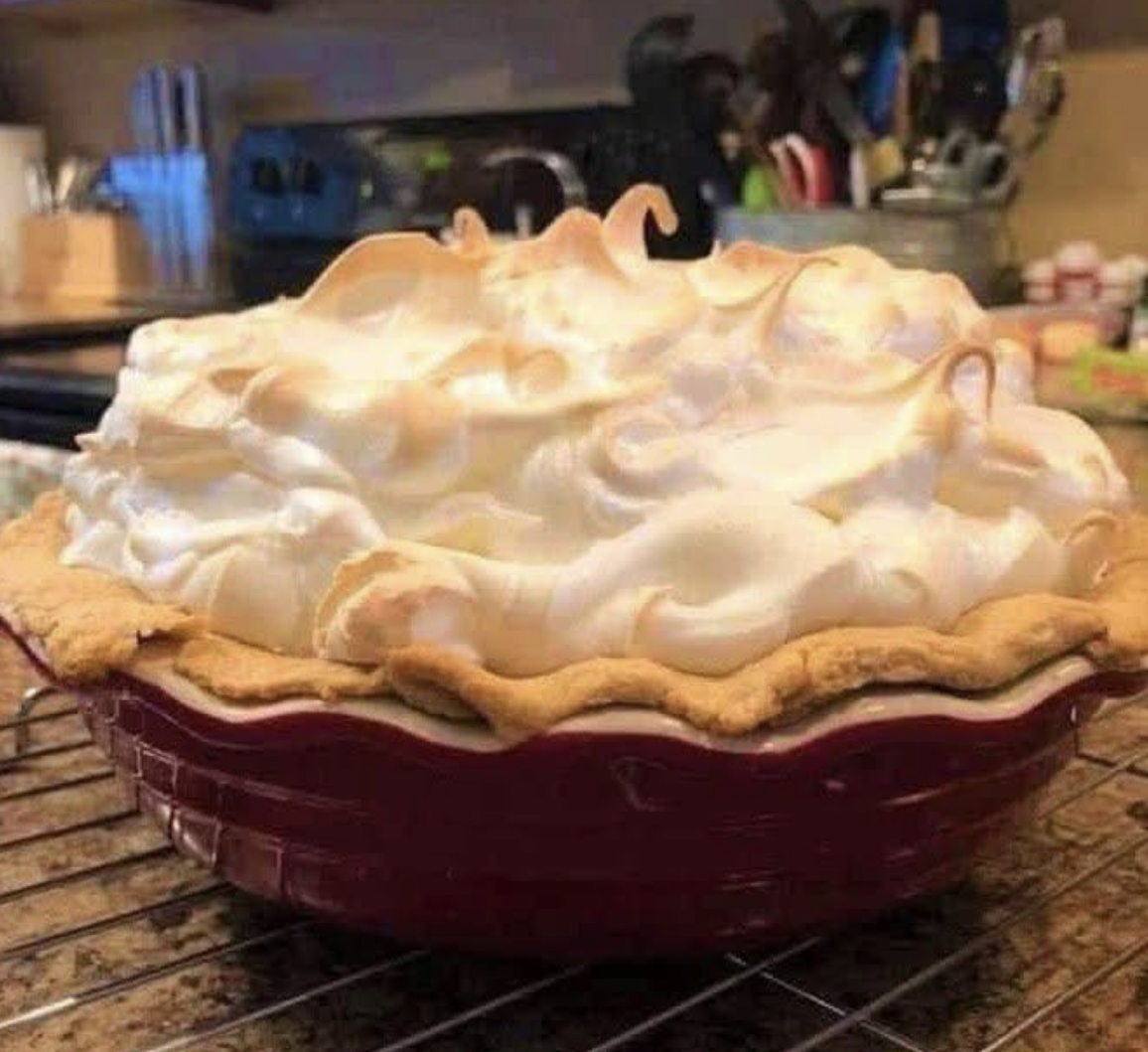 Hot filling + meringue: Always spread the meringue over hot filling to help it stick and avoid separation.
