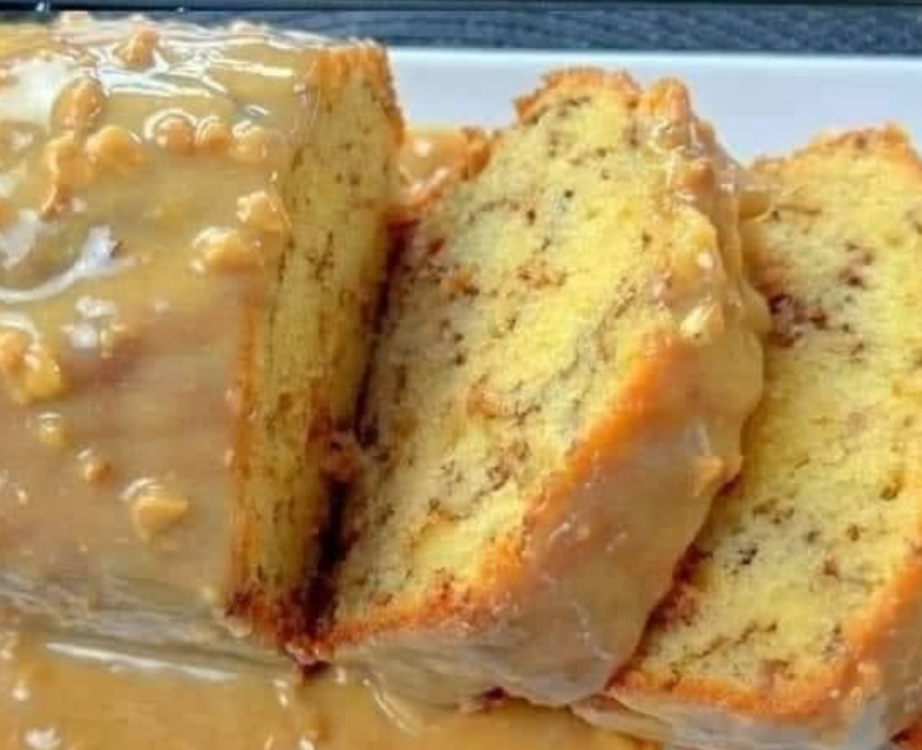 Pour the warm caramel glaze over the cooled banana bread. Sprinkle with chopped nuts or toffee bits if desired. Slice and enjoy!