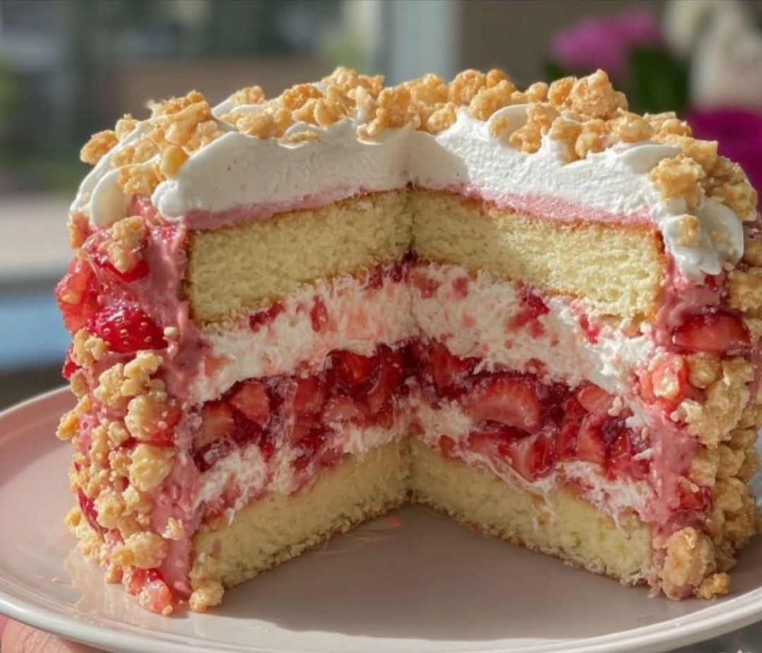 Mother’s Day Strawberry Crunch Cake Delight (Irresistibly Creamy, Fruity & Crunchy!)