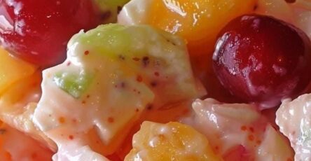 3. Add the drained crushed pineapple, chopped strawberries, and mandarin oranges to the creamy mixture. Stir to incorporate the fruits evenly.