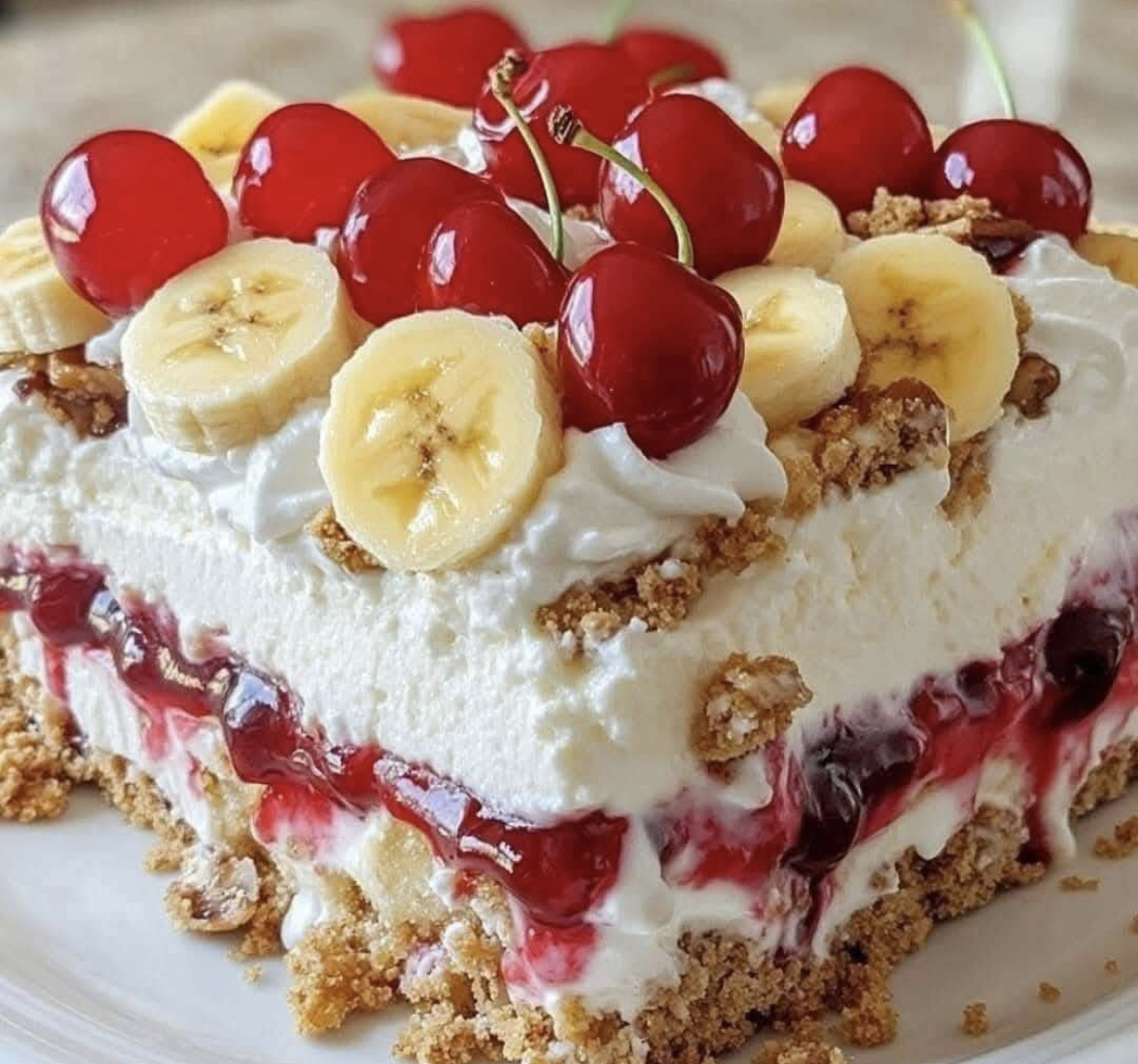 This No-Bake Banana Split Cake is the kind of recipe that brings smiles with every slice. It’s colorful, creamy, fruity, and downright irresistible. Keep it handy—you’ll be getting requests for this one all summer long!