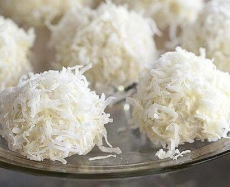 NO-BAKE Cream Cheese Coconut Snowballs Recipe Card