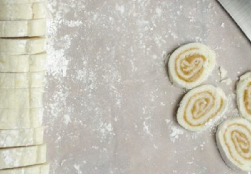 Roll the dough into a log, then slice into ¼-inch pieces. -