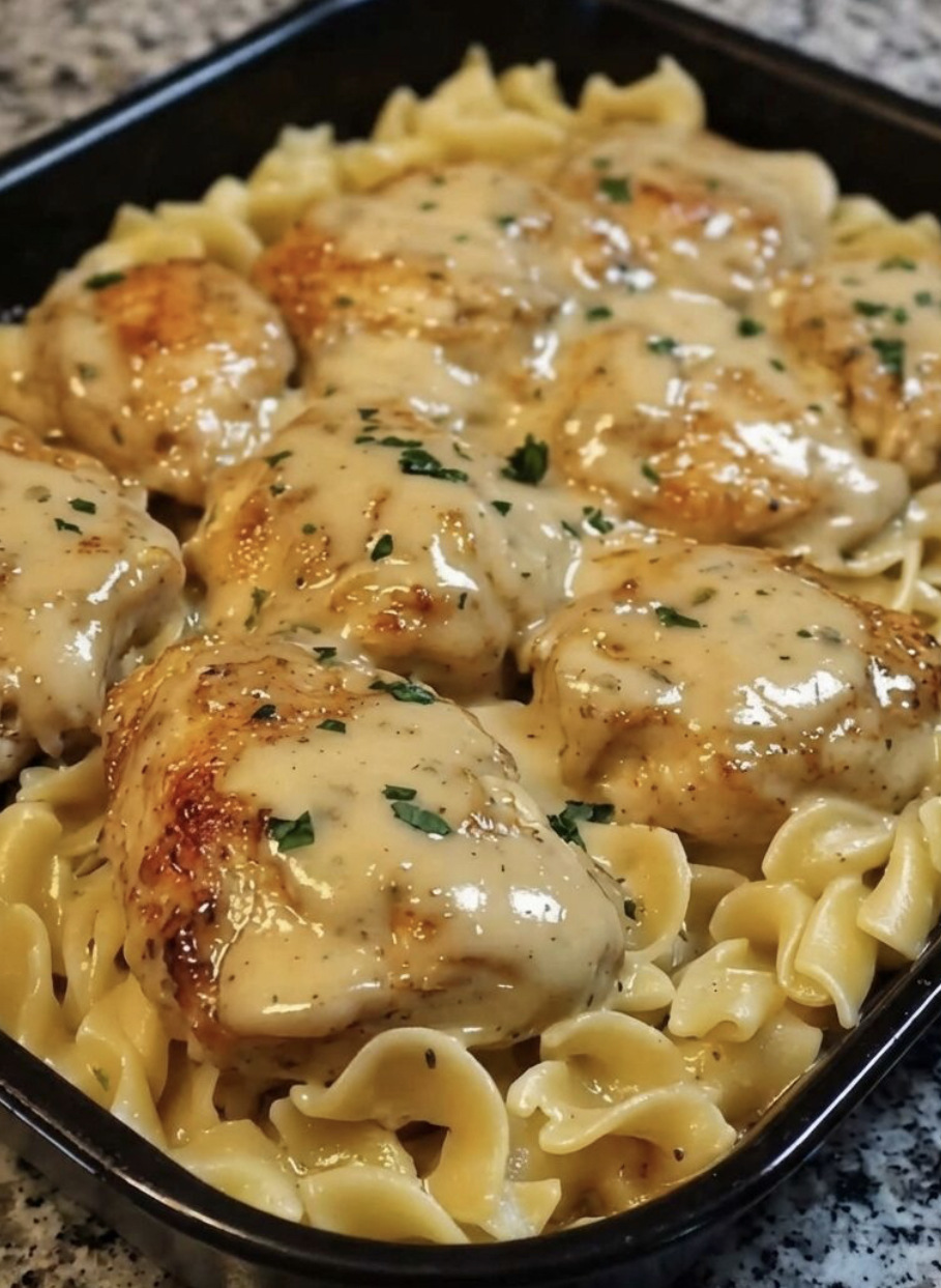 This dish is the definition of comfort food made easy. The chicken comes out juicy and golden, while the noodles absorb all the savory goodness from the broth and cream. The final stir of butter and Parmesan cheese adds an unmatched velvety richness that will have everyone at the table asking for seconds.