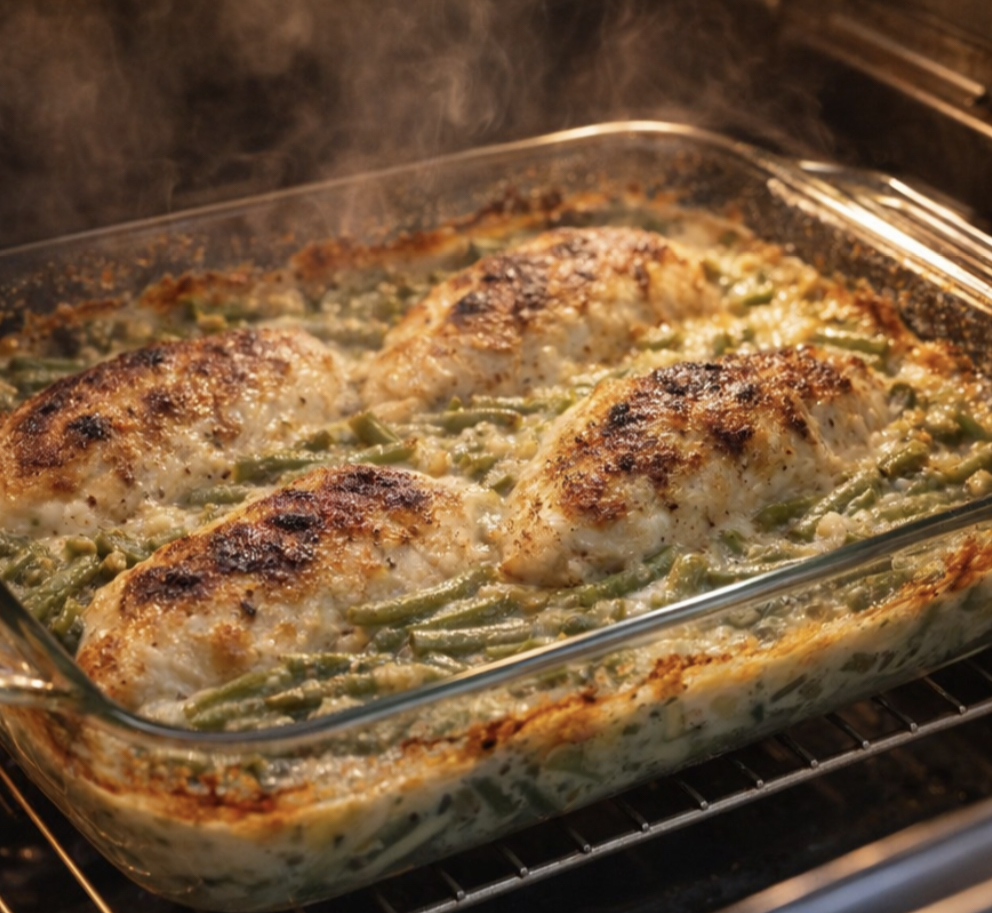Oven Baked 4-Ingredient Amish Chicken and Green Bean Bake (Easy Comfort Casserole)