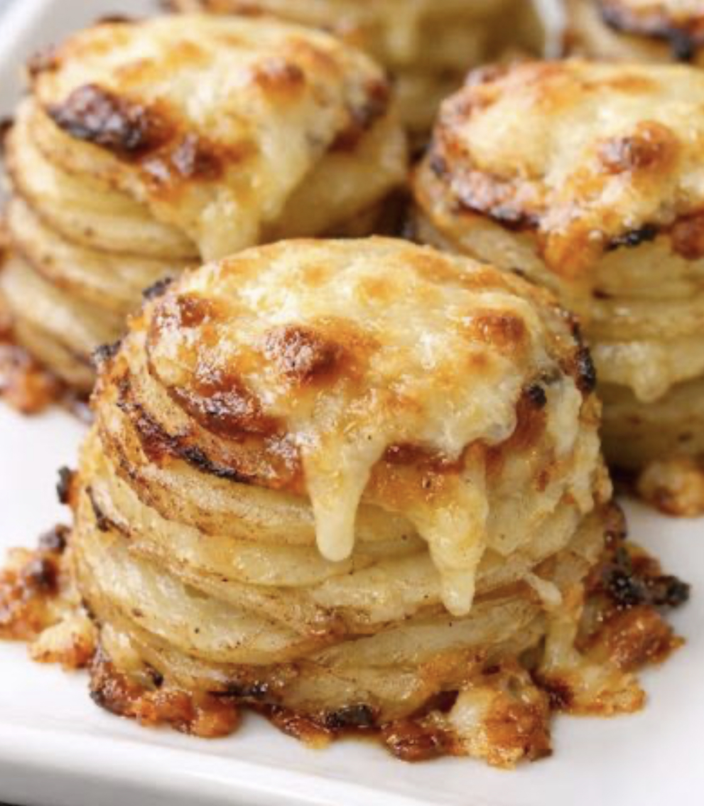 Serve these alongside a roast chicken, a grilled steak, or a holiday ham. Or serve them with a simple green salad and call it dinner. However you serve them, these cheesy potato stacks will disappear fast.