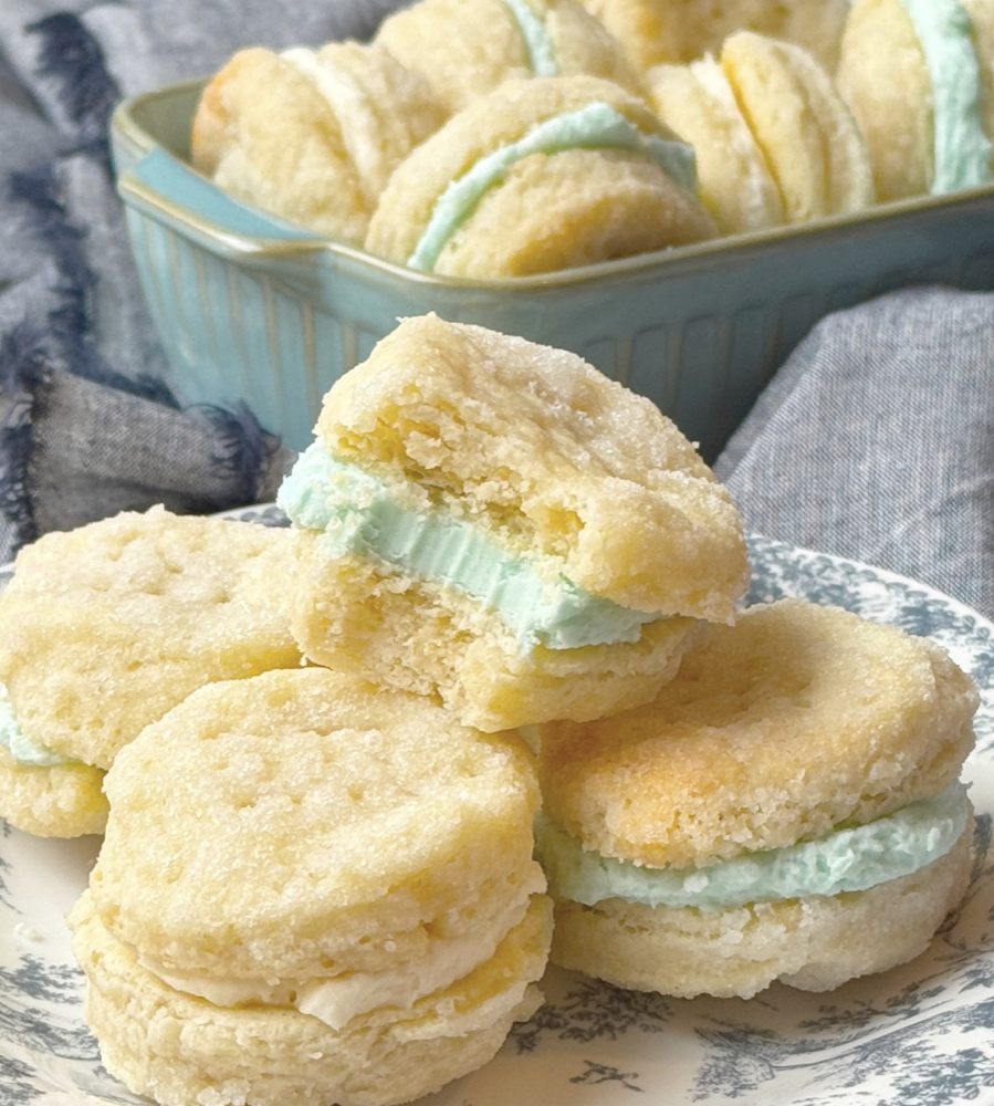 Made from a simple dough of butter, flour, and cream, the cookies bake into tender, flaky wafers. Once sandwiched with a dreamy vanilla buttercream, they become the kind of dessert that looks fancy but tastes like pure comfort. Dress them up with seasonal colors for Christmas, Valentine’s Day, Easter, or leave them simply golden for an anytime treat.