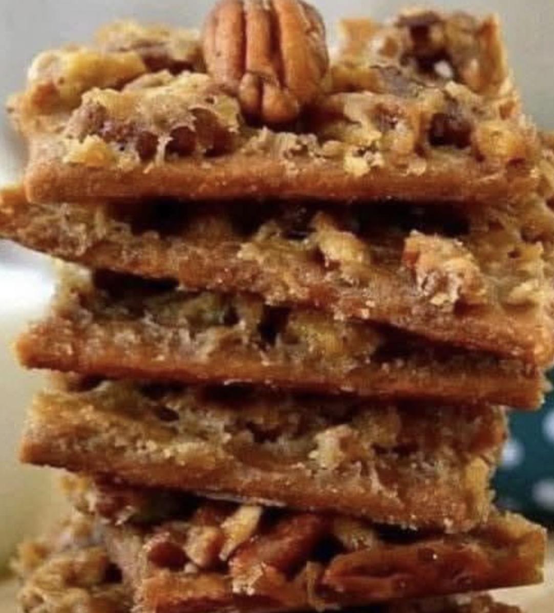 Pour the hot butter-sugar mixture evenly over the graham crackers, spreading with a spatula to cover completely. Sprinkle the chopped pecans evenly over the top, pressing them lightly so they stick.