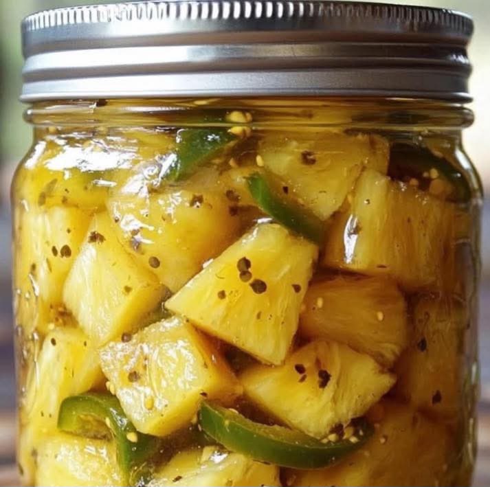 A sweet and spicy treat that blends the tropical sweetness of pineapple with the heat of jalapeños, perfect for snacking or as a unique condiment.