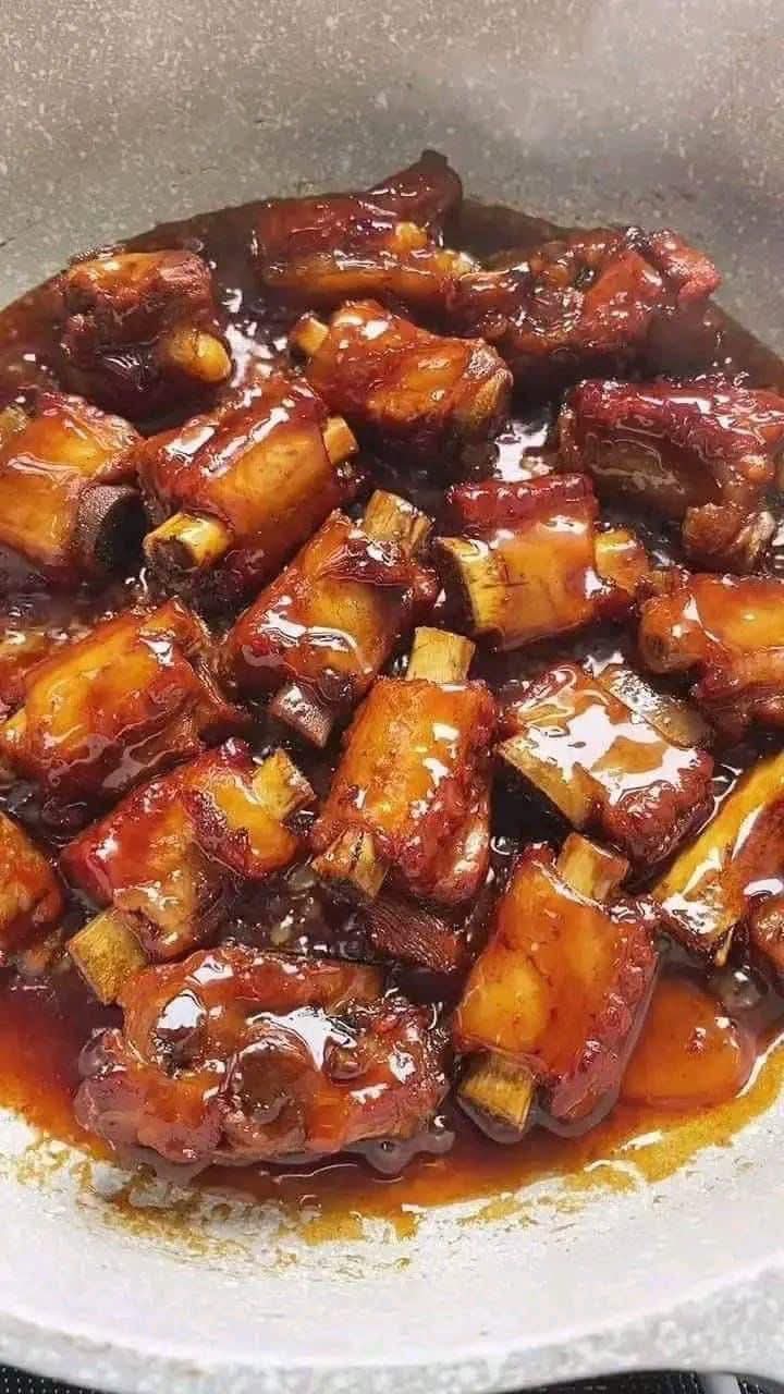 4. Caramelize: Add water to the pan, lower the heat, and let it simmer. Stir occasionally until the sauce thickens and the ribs are well-coated in a caramelized glaze.
