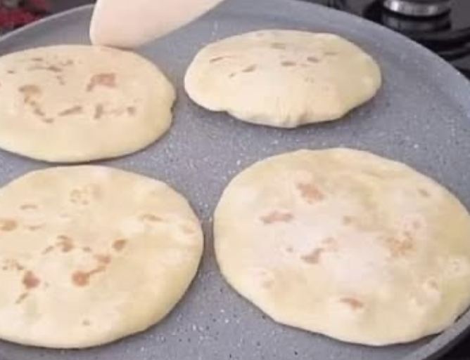Place the dough discs in the skillet, leaving space between them to prevent sticking. Cook for 2 to 3 minutes per side, until the bread is golden brown and puffed up. Flip carefully using a spatula. The bread is done when both sides are golden and the center is cooked through.