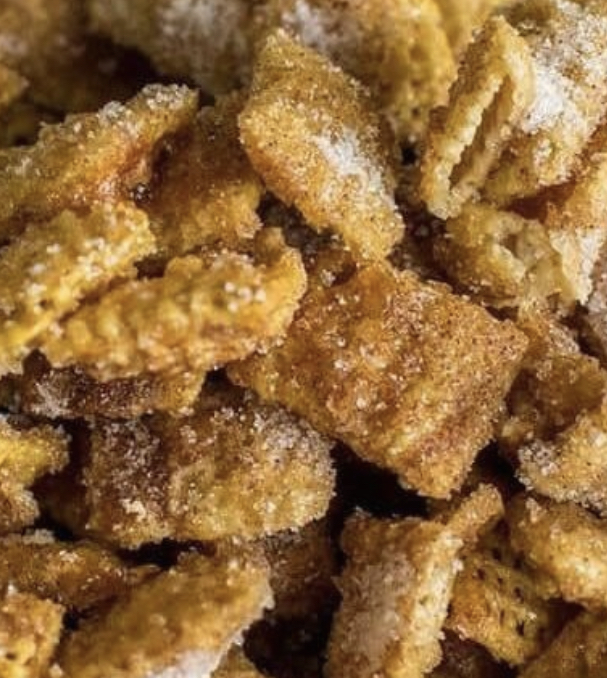 Spread the Churro Chex Mix on a baking sheet to cool for 5–10 minutes.