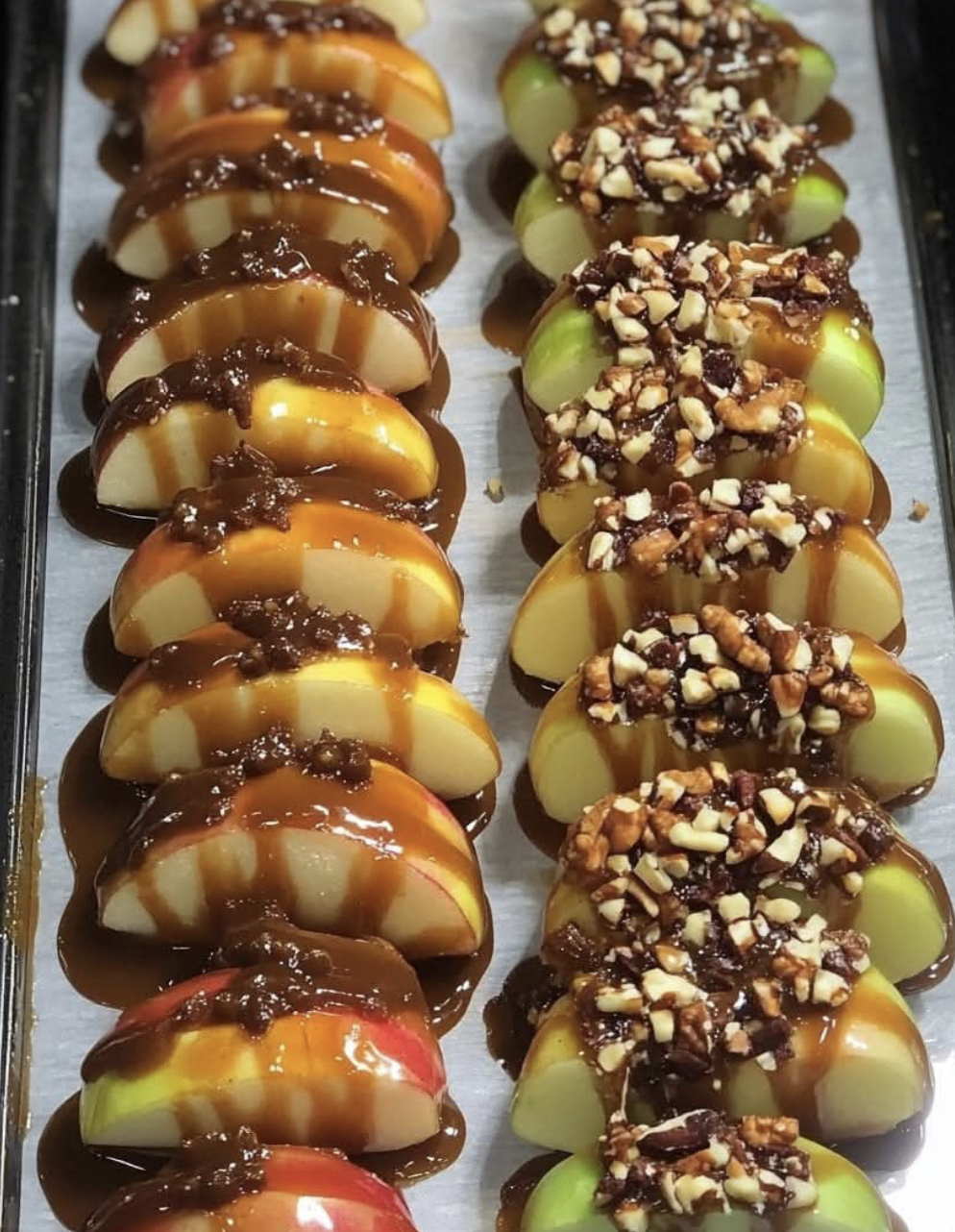 Caramel apples first appeared in the early 1900s when candy maker Dan Walker created them for a special event. Over time, they became a hallmark of Halloween and fall festivities, with endless variations like chocolate drizzle, nuts, and sprinkles. This sheet pan version takes the beloved but often messy treat and transforms it into a family-friendly dessert that’s easy to serve.