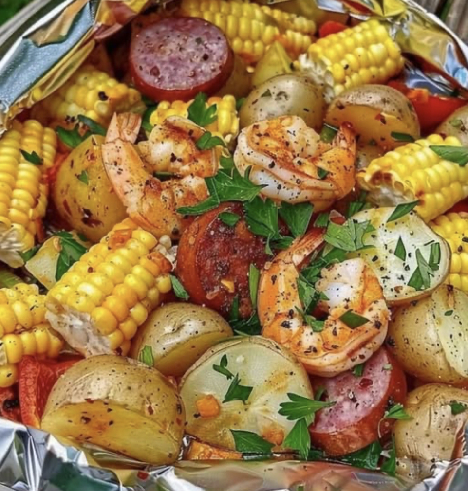 Looking for a bold, smoky, and satisfying dinner that’s easy to make and even easier to clean up? This Shrimp, Corn, Potatoes, and Smoked Sausage Foil Pack has it all. Inspired by classic Southern shrimp boils, this recipe packs juicy shrimp, tender potatoes, sweet corn, and flavorful smoked sausage into individual foil packets. Everything steams together with seasoned butter and herbs, creating a mouthwatering one-pack meal that’s perfect for grilling, baking, or campfire cooking.