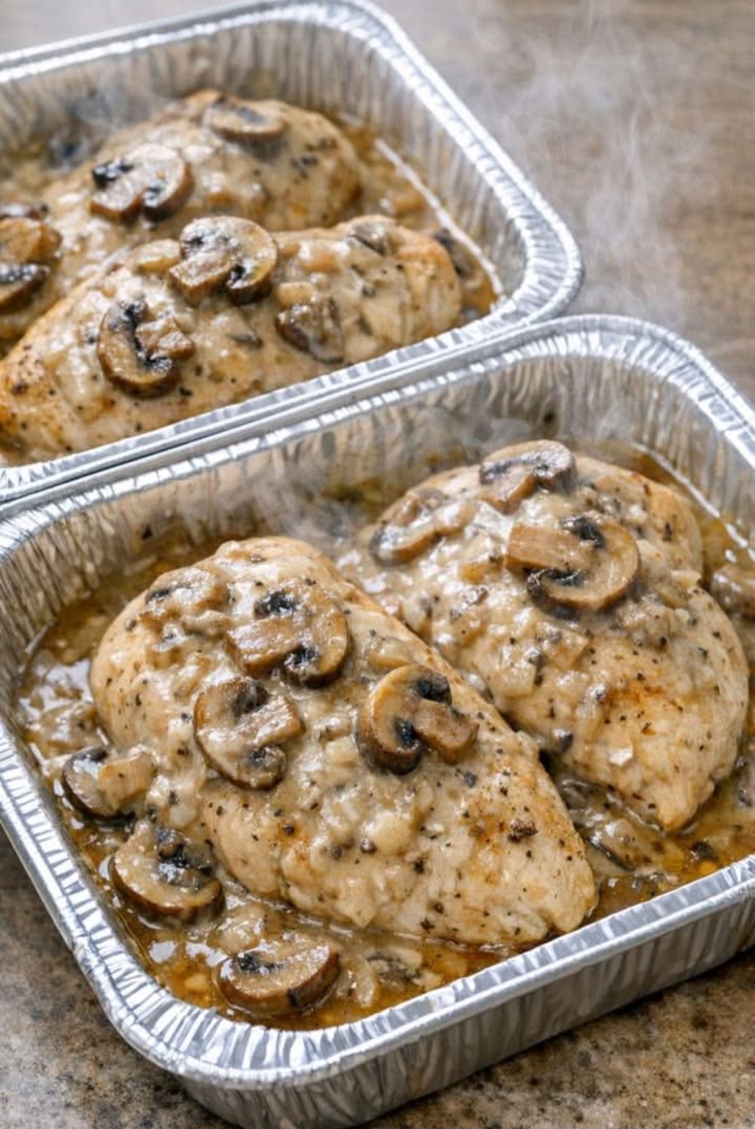 The heart of the dish. Chicken breasts cook slowly in the sauce until they become incredibly tender and juicy. As they cook, they release natural juices that blend with the soup to form a rich gravy.