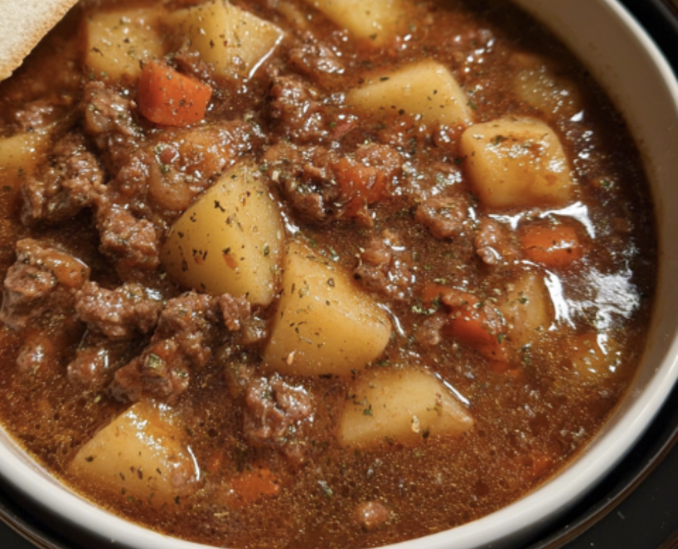 This rustic, comforting stew combines ground beef, potatoes, and mixed vegetables in a savory beef broth. It is simple, satisfying, and perfect for busy days.