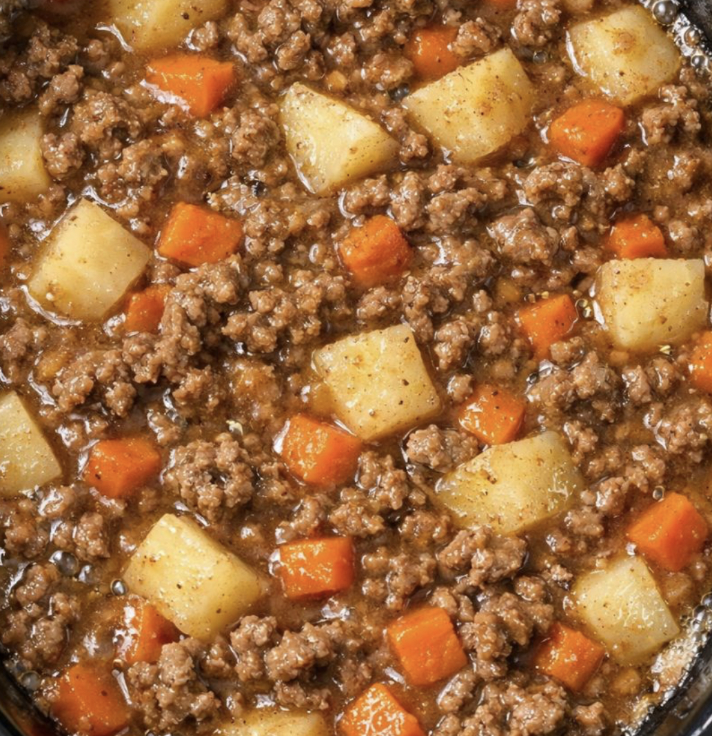 This slow cooker version honors that tradition. The ground beef is browned first for extra flavor, then layered with tender potatoes and sweet carrots. The onion soup mix creates a rich, savory broth that thickens naturally as the potatoes release their starch. The result is a stew that’s hearty, filling, and full of old-fashioned comfort.