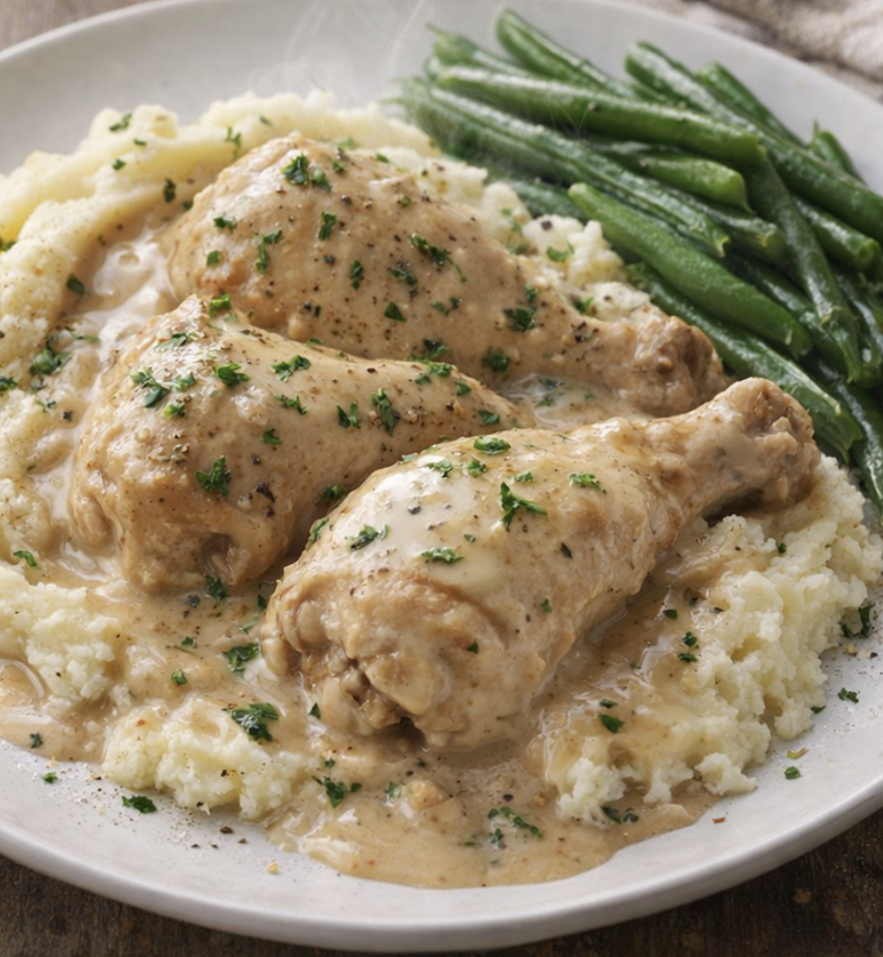 With just a handful of pantry staples, this recipe delivers tender chicken in a creamy, comforting gravy. It is perfect for busy days when you want a hearty homemade meal without spending hours in the kitchen.
